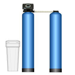 Принцип работы фильтра умягчителя основан на ионообменном поглощении катионов при прохождении исходной воды через слой фильтрующего материала (ионообменной смолы) и замены этих ионов на натрий. Восстановление работоспособности загрязненной ионообменной смолы по истечении фильтроцикла осуществляется автоматически клапаном управления, который проводит регенерацию при которой из солевого бака забирается солевой рассол, пропускается через слой смолы и происходит обратный ионный обмен - зарядка смолы ионами натрия, а загрязнения вымываются в канализацию. Конструктивная особенность фильтра непрерывного действия, состоящего из двух корпусов работающих попеременно позволяет подавать очищенную воду круглосуточно, даже в момент промывки.