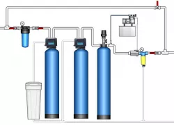 - обезжелезиватель удаляет железо, марганец и сероводород, которые нельзя подавать на систему умягчения, так как может сократится срок службы ионообменной смолы умягчителя