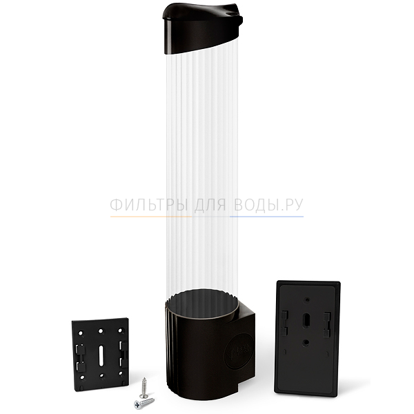 Держатель для стаканов Ecotronic чёрный диаметром 70 мм для пурифайера в комплекте с магнитным креплением и креплением на шурупах - изготовлен из высококачественного поликарбоната с максимальной загрузкой на 70 стаканов.
