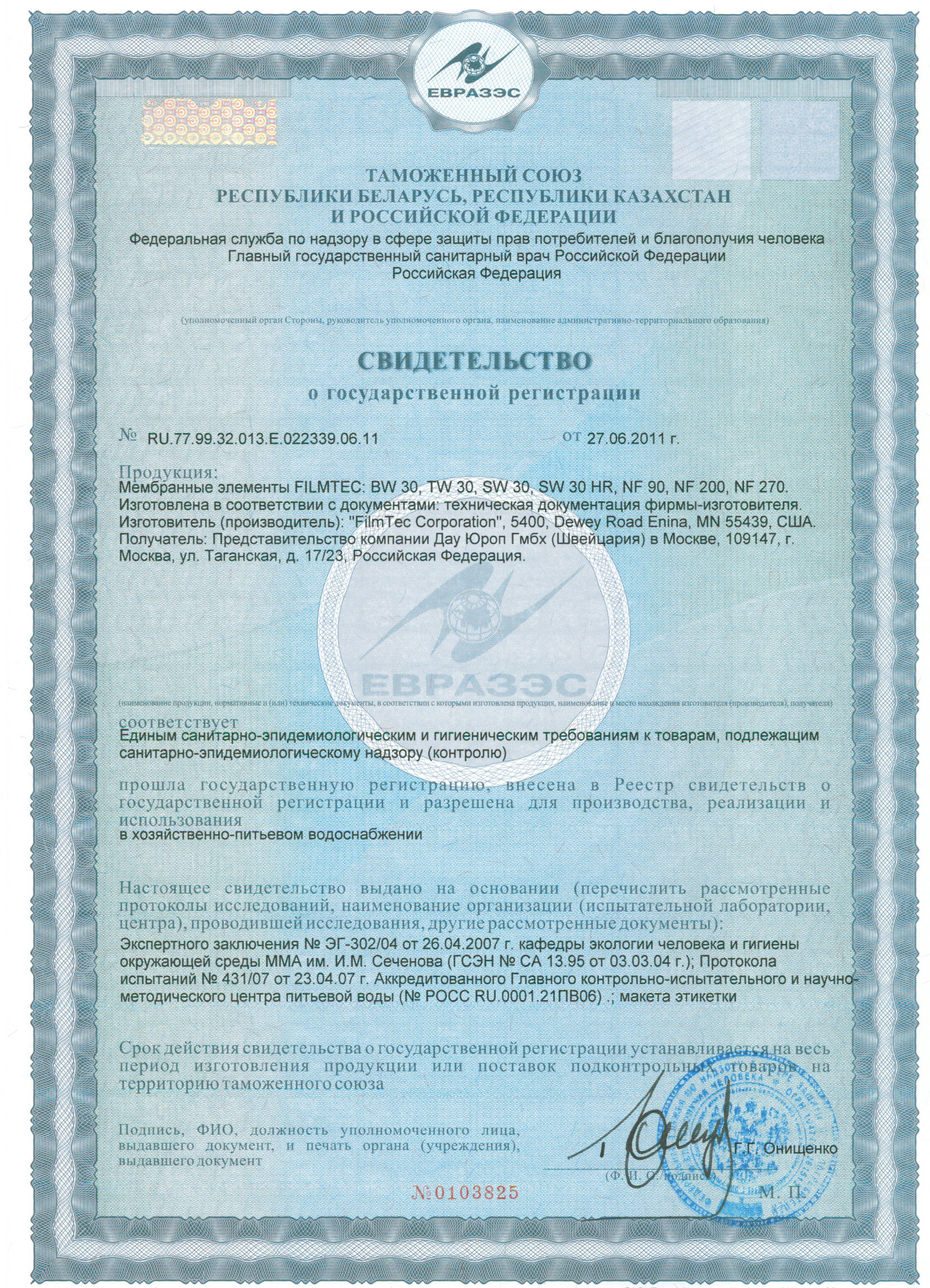 Изготовитель : | Dow Filmtec |