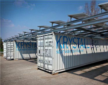 Интересную систему очистки воды с помощью солнечной энергии предлагает компания SwissINSO Holding Inc. Менеджеры компании позиционируют свою разработку как замену стандартного водопровода в местах, отдалённых от цивилизации: деревнях развивающихся стран. О том, что находится внутри 40-футовых контейнеров, особо не сообщается. Единственное, что известно точно – очистка воды производится с помощью солнечной энергии. Таким образом, можно заменить шумные и использующие органическое невозобновляемое топливо дизель-генераторы. Также отпадает необходимость в дальних перевозках чистой воды либо от длительных походов за чистой водой, которые иногда отнимают у жителей таких деревень несколько часов.